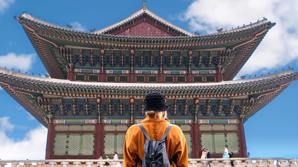student looking at landmark in Korea